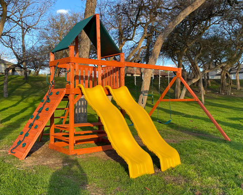 Visit River City Play Systems in Schertz or San Antonio to compare Playground One!® swing sets in person, ask questions, and get local help from our team.